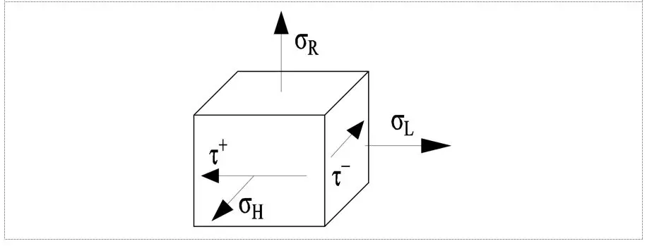 W kolejnym kroku ze ścianki rury wyodrębniono sześcian i naniesiono naprężenia główne. Mamy zatem naprężenia: podłużne sigmaL, ścinające teta , obwodowe sigmaH i promieniowe sigmaR.