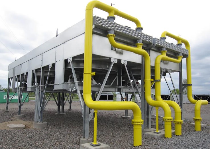 W części drugiej zastanówmy się na sztywnością złożoną własnie. W technologii rurociągów ma ona zastosowanie w przypadku aparatów na wiotkich konstrukcji wsporczych, takich jak przedstawiono poniżej. Sztywność wyznaczona dla króćców urządzenia w oderwaniu od całego urządzenia jest błędem. W idealnej sytuacji sztywność krócców powinna być wydana przez producenta. Oczywiście jest to bardzo rzadki przypadek. Jeżeli ktoś jest zainteresowany jak samemu wyznaczyć sztywność króćca, to zachęcam do przeczytania części I — Tutaj