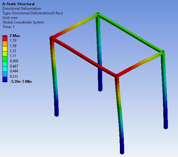 Z powyższego rysunku można wyznaczyć sztywność kierunkową ramy aparatu, np KFx = 1 kN/mm. Tak postępujemy dla wszystkich sześciu stopni swobody. Na przykład w kierunku X sztywność KNx = 3 kN/mm.