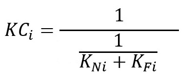 Sztywność złożona układu króciec-aparat-fundament jest równa prostej zalezności. Dla każdego stopnia swobody jest to odwrotność sumy odwrotności sztywności króćca i ramy.